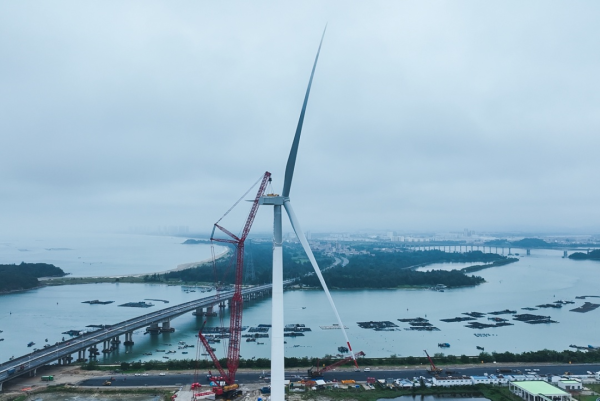 该机组核心部件,即18.X兆瓦永磁半直驱发电机,具有振动小、噪音低、温升均匀等特点。同时,该机组传动链采用了模块化设计,将轴系、齿轮箱和发电机高度集成,这一创新设计不仅提高了传动链的可靠性和传递效率,也带来良好的电网适应性。