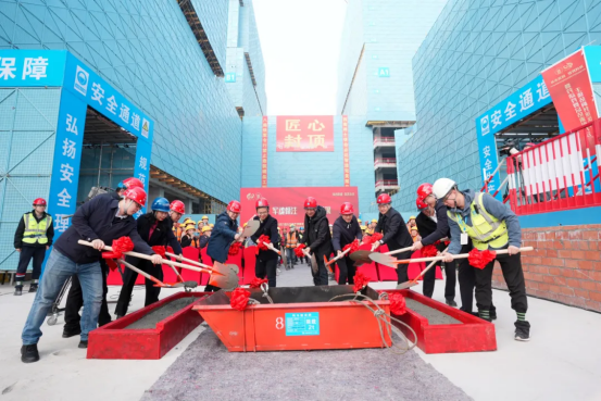 ▲“壹号娱乐-com - NG大舞台,有梦你就来之窗”主体结构封顶仪式