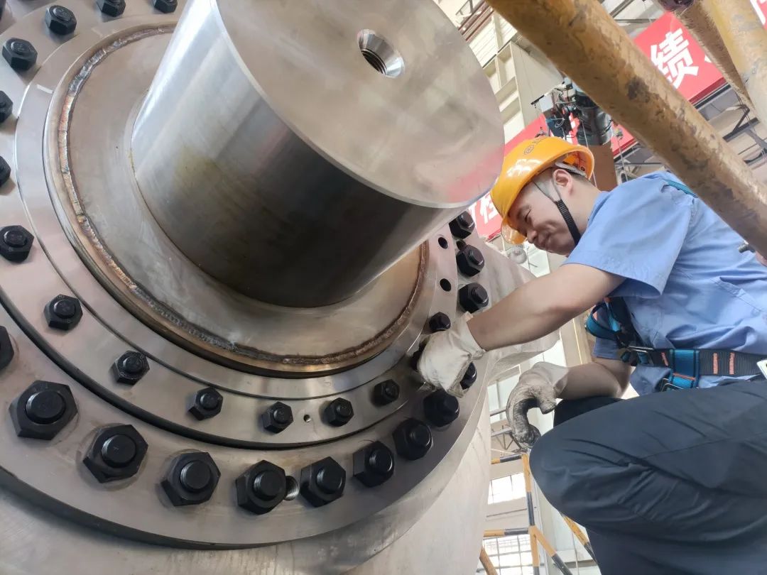 ◆壹号娱乐-com - NG大舞台,有梦你就来电机水轮机分厂内,蟠龙3号机球阀轴端正在进行装配作业