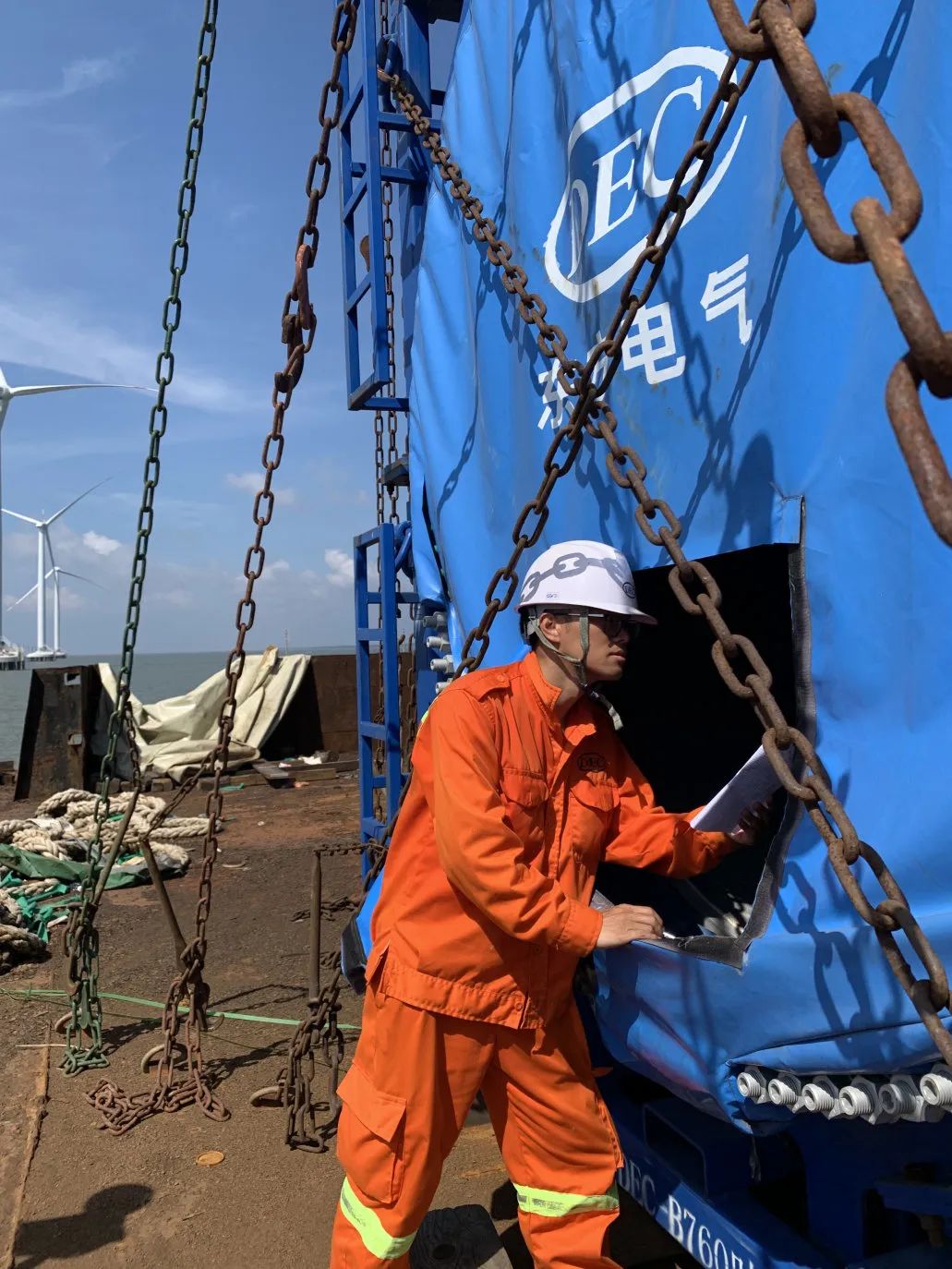 ◆壹号娱乐-com - NG大舞台,有梦你就来国际职工正在核对越南长海3期海上风电项目相关数据,协调风机吊装工作