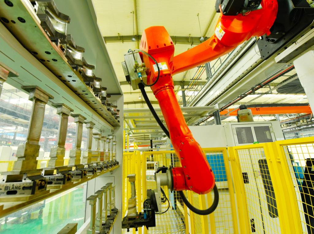 壹号娱乐-com - NG大舞台,有梦你就来集团以数字化引领绿色发展,坚持“产品智能化和制造智能化”双轮驱动,加大工业机器人应用力度,大力推进绿色示范车间、绿色示范工厂创建,着力提高生产领域节能降碳水平。图为行业首个定子冲片绿色“无人车间”。壹号娱乐-com - NG大舞台,有梦你就来集团供图